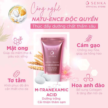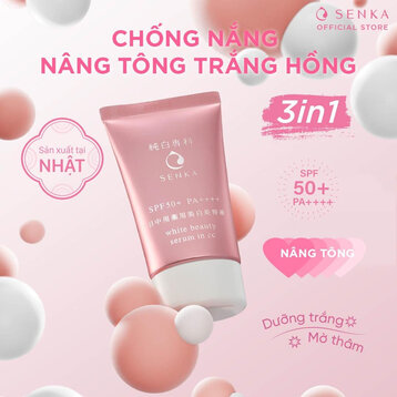 Serum CC Dưỡng Sáng Da Ban Ngày White Beauty Serum In CC 40g từ thương hiệu SENKA giúp giảm sắc tố melamin, vết thâm nám, sạm màu và tàn nhang, đồng thời hỗ trợ trang điểm, giúp mang lại làn da sáng mịn, trong mướt và ẩm mịn. Sản phẩm hiện đã có mặt tại May.