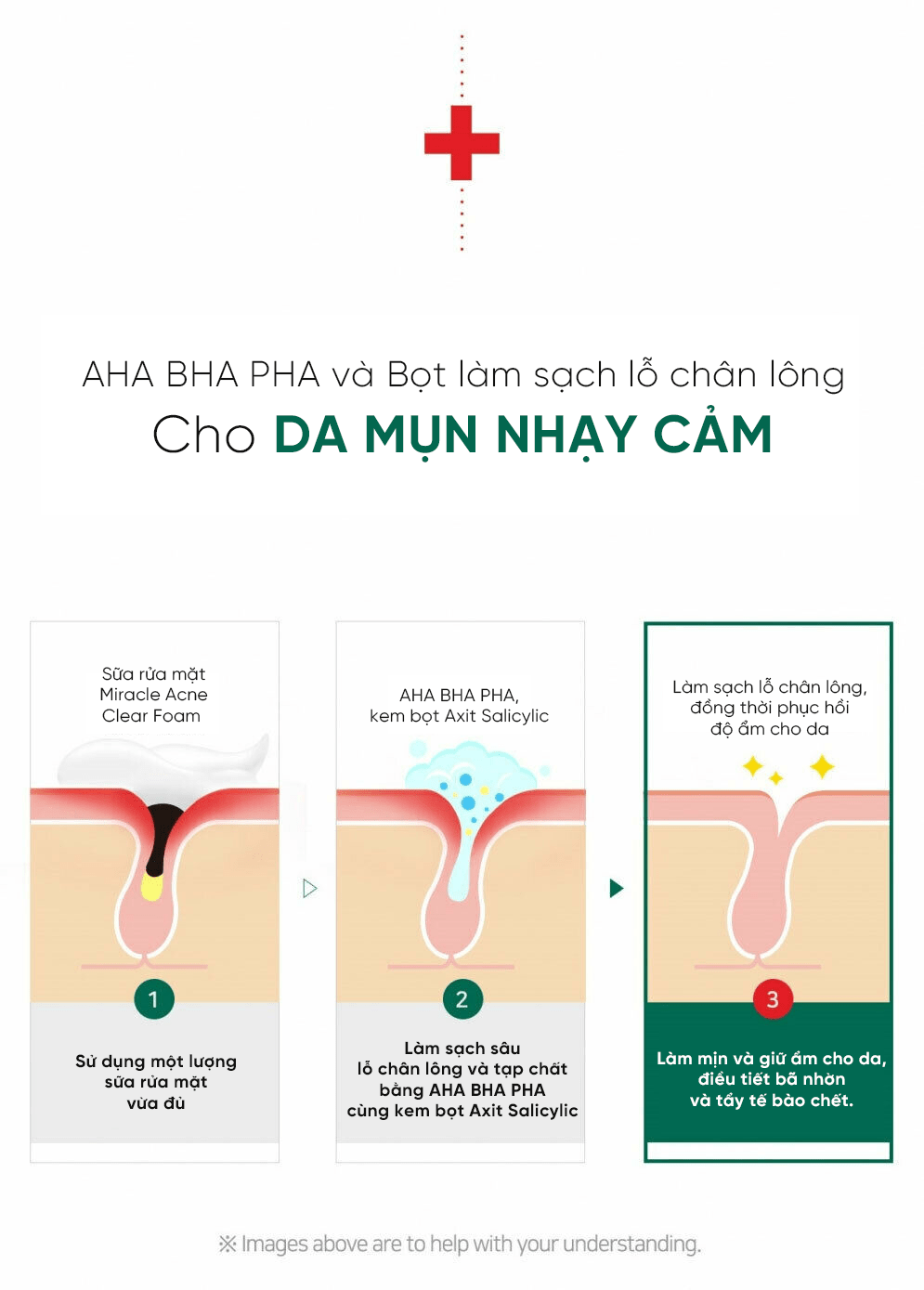 Bên cạnh đó, với phức hợp AHA – BHA – PHA chỉ có trong dòng sản phẩm dành cho da mụn SOME BY MI mang lại hiệu quả vượt trội cho da, trong đó :