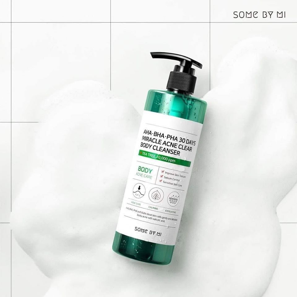 Lấy một lượng sữa tắm Some By Mi vừa đủ vào lòng bàn tay hoặc bông tắm.